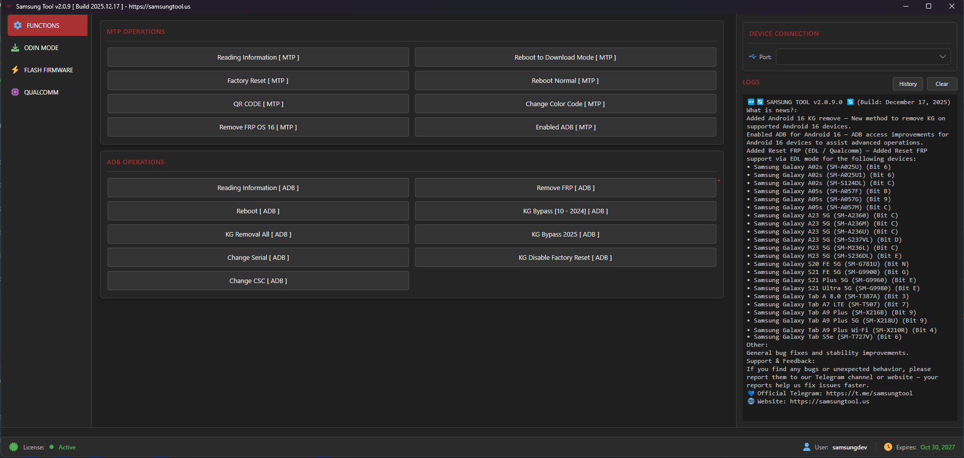 وظائف مثل Flash/Erase/Backup/Remove FRP/Remove Lost Mode وMDM handling. Samsung Tool